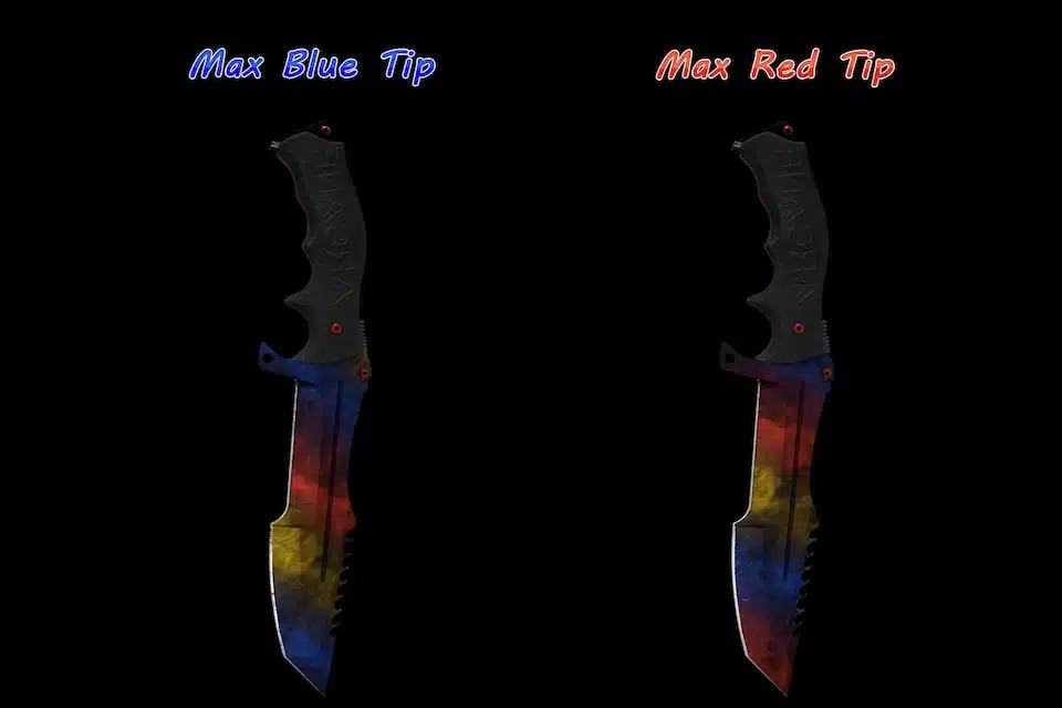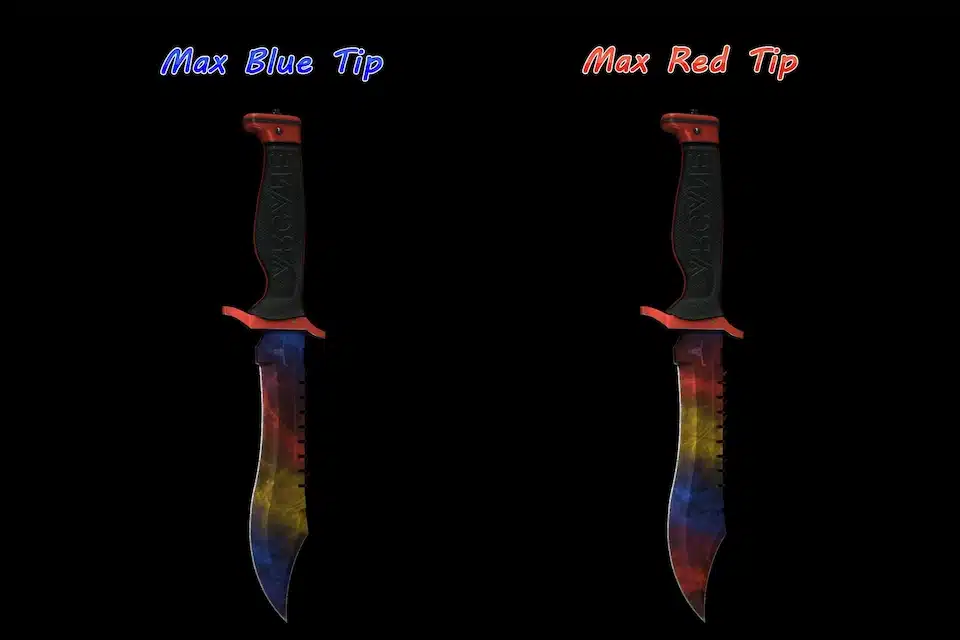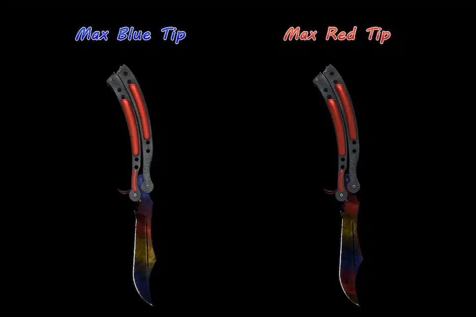Here are the Marble Fade patterns for different knives, usually you categorize them by the color of their tip. Red tips are often slightly more expensive than blue ones, while yellow ones are the least worth.